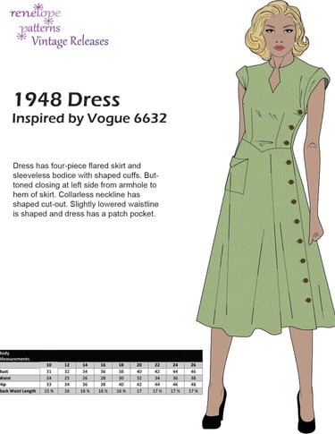 PDF versions include a copy shop print version as well as a letter/A4 version that you can print out at home. A picture of the inspiration pattern has been provided. The pattern has been scanned and graded from the original inspiration pattern. As vintage sizing has been used, I recommend making a muslin for fitting purposes.