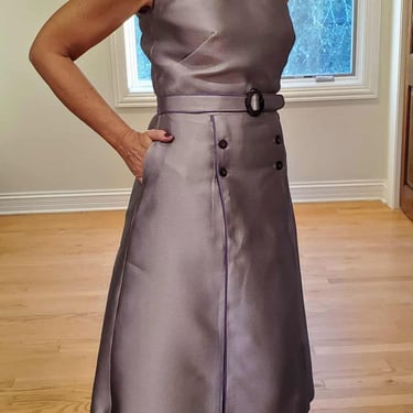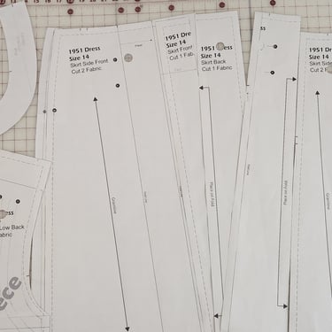 After making a muslin and adjusting fit I redrafted the front and side skirt panels so that I could add piping. There are front pleats that button closed but the instructions on how to form the pleats are very confusing. I redid them about five times on the muslin…and then couldn’t remember the process so I needed to do it again on the actual dress. I have tried to make this a lot clearer on my instructions.